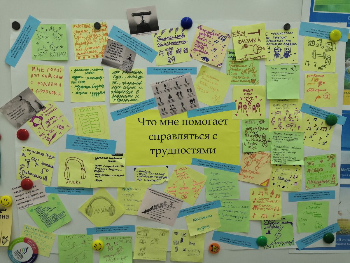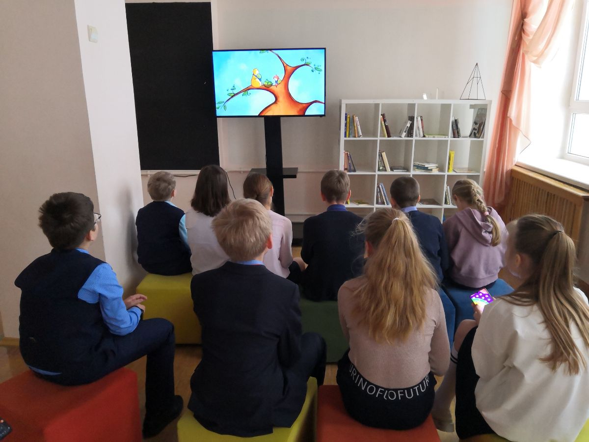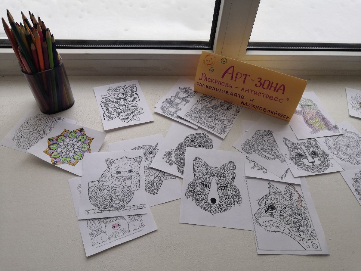 - На переменах ребята прибегали в холл второго этажа, чтобы не пропустить новые психологические мультфильмы и принять участие в мастерской «Раскраски-антистресс».