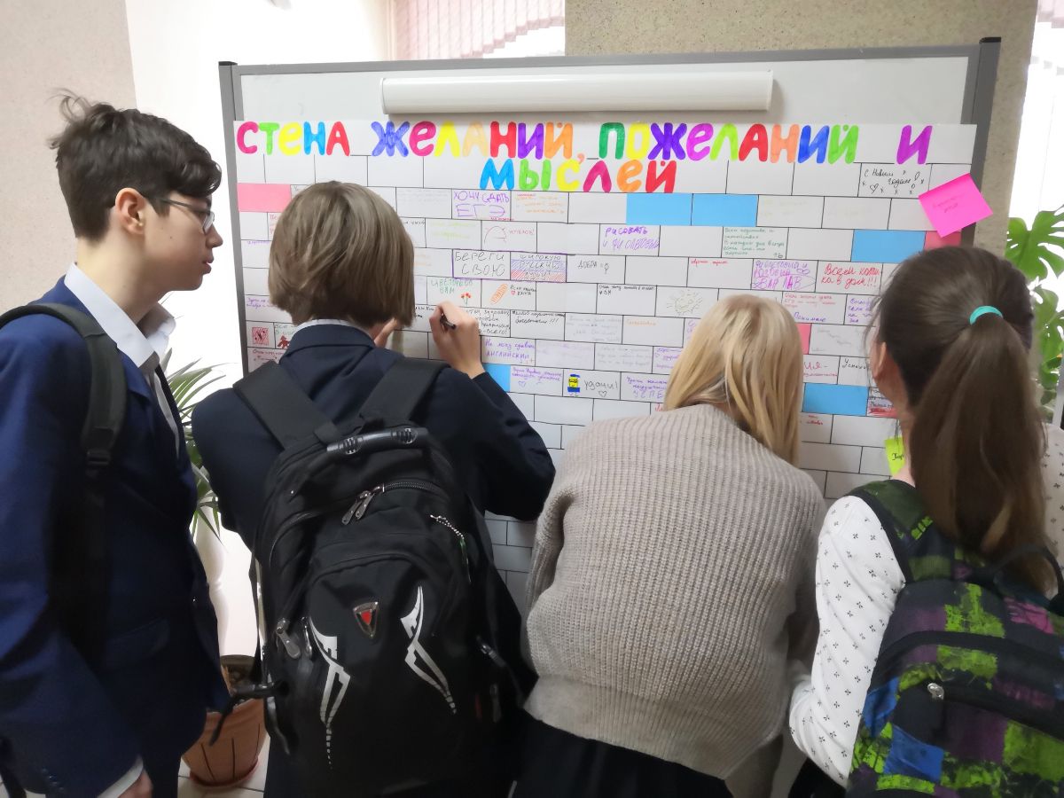 - В течение недели в гимназии прошла психологическая акция «Стена добрых пожеланий», работала интерактивная выставка «Навигатор поступления».